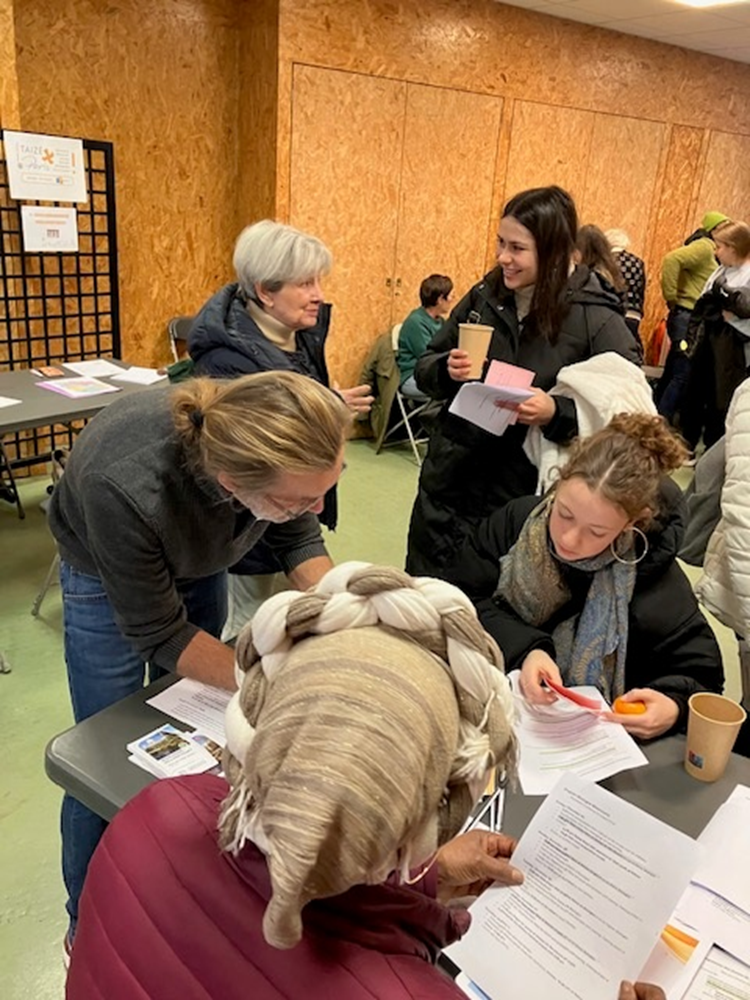 Les premières réunions laissaient planer une inquiétude : y aurait-il assez de familles, assez de bras, assez de temps en cette période de fêtes ? Mais dès qu’une, puis deux familles ont dit “oui” nous avons compris que le Seigneur nous montrait le chemin. Une véritable toile de communication s’est tissée entre nos églises catholiques protestantes et orthodoxes, les familles et les jeunes. Le point d’appui essentiel a été l’équipe Taizé du sud 92 : Mariana colombienne, bénévole Taizé, Hélène, sœur de la communauté de Saint-André, Agathe, Lyonnaise bénévole Taizé et Frère Paolo de Taizé, toujours présents aidants et soutenants.